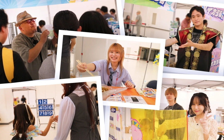 そして、一番名前からその正体を想像できなかった「ハイカラな屋台」は、なんとストラックアウトに挑戦できる屋台!ゲーム系の屋台には条件をクリアすると限定のTシャツがゲットできるという特典があり、小さなお客様が多く参加していた様子。ハイカラな屋台にも、あやの・おいも・ひなの3人に見守られながら全力でボールを投げる方がたくさんいらっしゃいました。
