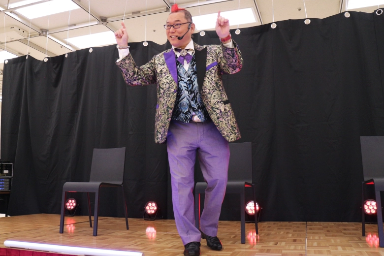 屋台を巡って楽しんでいると、突然怪しげな音楽が流れ始め…ステージに姿を現したのは、催眠エンターテイナー・十文字幻斎先生!