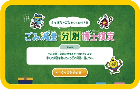 札幌市によるアプリゲーム「ごみ減量・分別博士検定」を使った体験コーナーを展開し、ごみの分別やリサイクルについて楽しく学べるゲームに挑戦しながら、身近な環境問題への理解を促します。