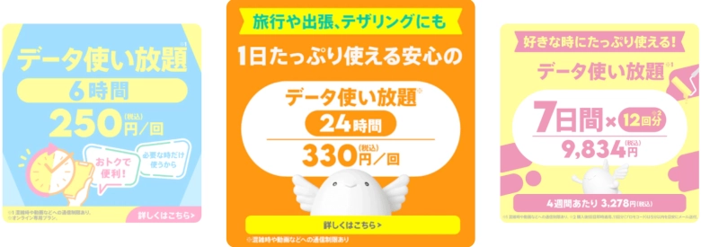 旅行や大容量DLの予定日だけ「24時間使い放題」を差し込むなど、用途に応じて短期集中で買うとコスパを最適化できます。