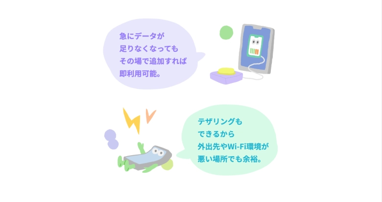追加80GBを1,980円で足せば計110GBまで拡張できるため、動画やテザリングを多用するヘビーユーザーにも対応可能です。