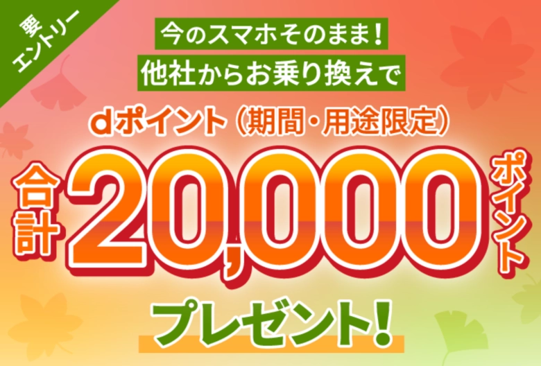 それでも迷うなら、今実施中の乗り換えキャンペーンでdポイント20,000ポイントがもらえるうちに試してみるのが賢明です。