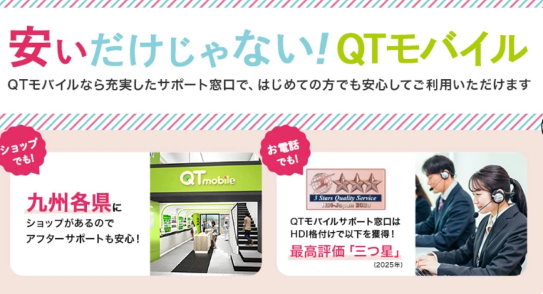 ただしQTモバイルではオンラインチャット相談や出張店舗イベントなども展開しており、九州外でもできる限り手厚いサポートを提供できるよう工夫しています。