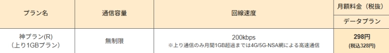 - 月額328円「神プラン」のスペック詳細