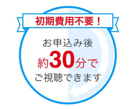 面倒な工事や営業電話は一切なし。Web申し込みだけで最短30分ほどで視聴開始できます(アンテナとテレビがあれば)。