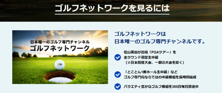 インターネット配信だけでなく、従来のテレビ放送でPGAツアーを楽しみたい方向けのサービスも存在します。