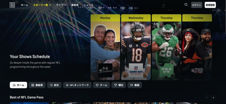 しかもNFLだけで終わらず、サッカーや野球、格闘技、F1まで同じアプリで楽しめるから、スポーツ好きほど毎月の満足感が積み上がりやすいのが魅力です。