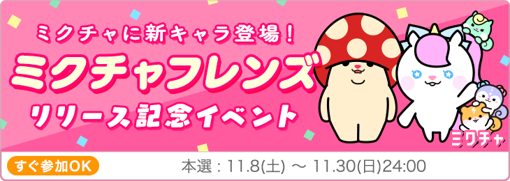 ミックマフレンズリリース記念イベント11月8日(土)〜11月30日(日) 終了