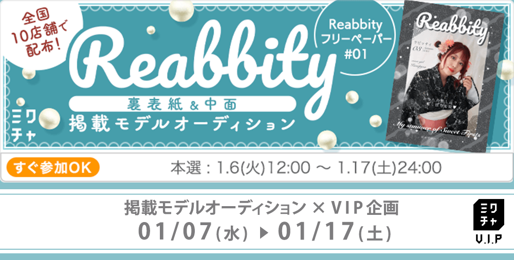 全国10店舗で配布!Reabbityフリーペーパー#01 裏表紙&中面掲載モデルオーディション×VIP企画