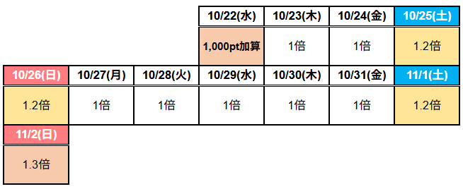 ※初日の+1,000pt加算は、10月22日(水)に配信した方のみにイベント期間中に加算いたします。