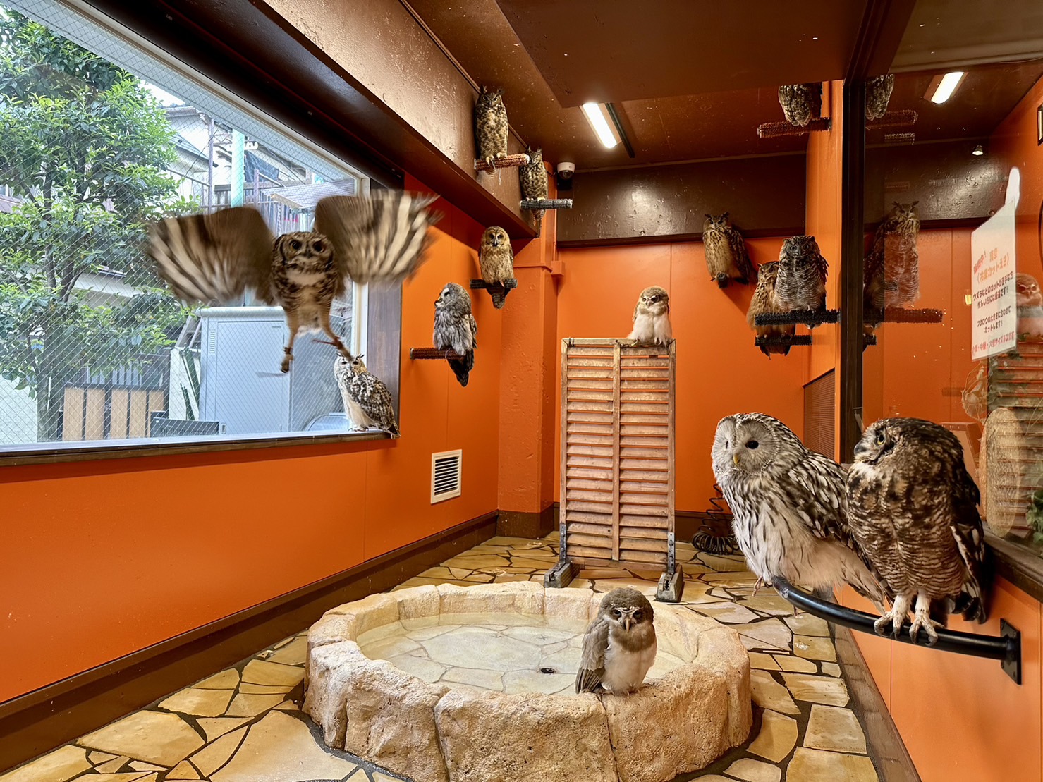 フクロウやインコ、オウムなど鳥類を主とする動物たちと遊べるお店です。