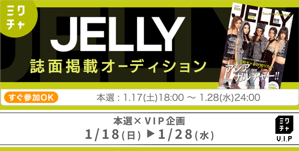 達成後、「JELLY誌面掲載オーディション×VIP企画×VIP企画希望」と
