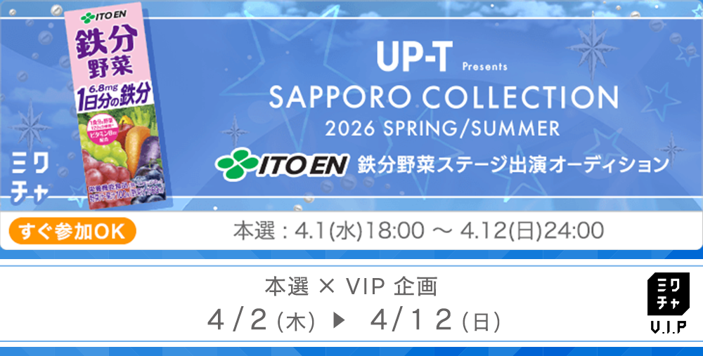 UP-T Presents SAPPORO COLLECTION 2026 SPRING/SUMMER "伊藤園 鉄分野菜" STAGE出演権オーディション×VIP企画