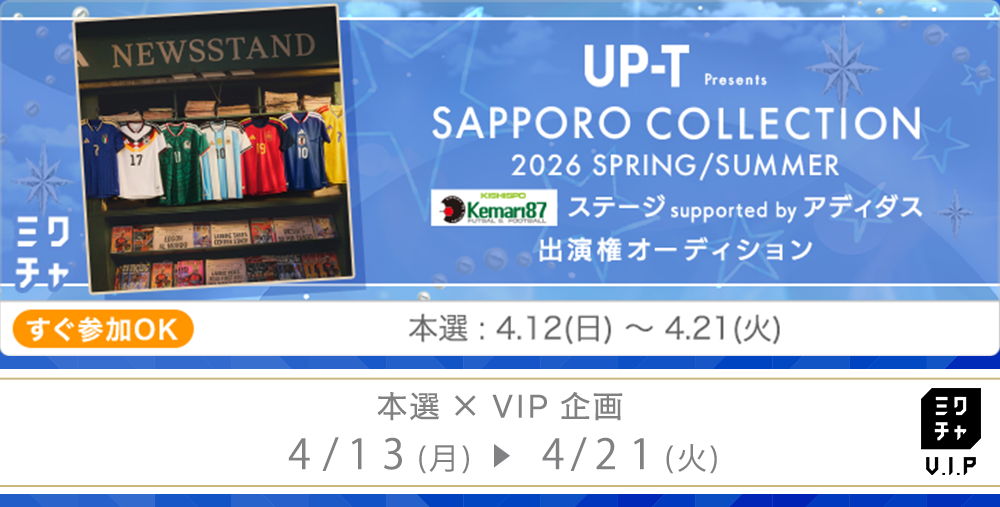 【UP-T Presents SAPPORO COLLECTION 2026 SPRING/SUMMER "KISHISPO ステージ supported by アディダス" 出演オーディション】