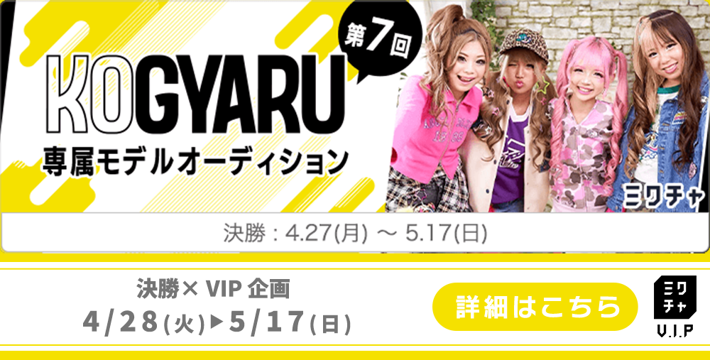 ●ライブ配信・動画投稿をする際は必ず[ 第7回『KOGYARU』 専属モデルオーディション ]のイベント選択をお願いします。正しく選択をしていない場合は獲得したミクチャポイントがランキングに反映されませんのでご注意ください。また、誤ってイベント選択した際にポイントを対象イベントに反映することはできかねますので予めご了承ください。