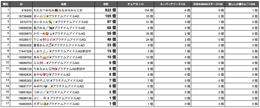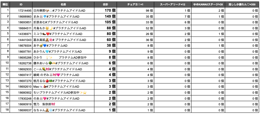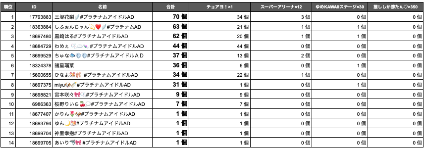 ※指定アイテムまたは配信時間が同率となった場合は、ゲリラ集計対象期間のみで獲得したポイントの上位を優先して順位付けを行っております。