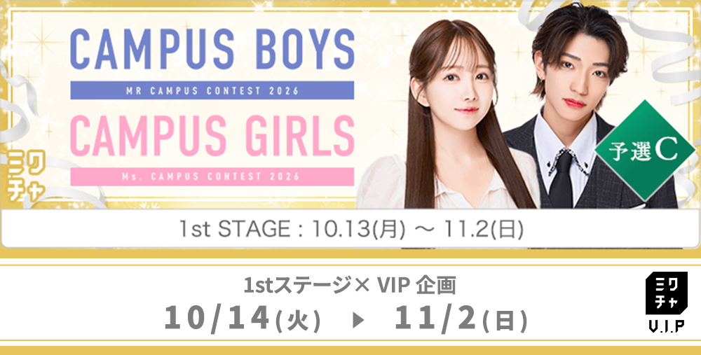 ※本キャンペーン特典にご指定いただけるライバーは、「CAMPUS BOYS/GIRLS 2026予選C 1stSTAGE」に参加している方のみに限定しております。