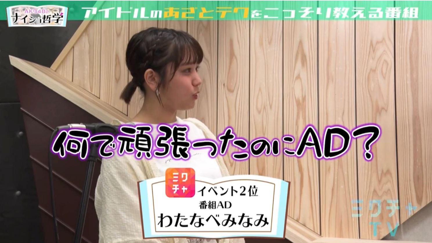 配信する際は必ず[AKB48が出演するチバテレビ放送「ナイショ哲学」出演権コンテスト第4弾<サブMC出演権枠>]のイベント選択をお願いします。