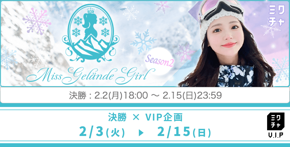 達成後、「Miss Gelände Girl Season2 決勝×VIP企画希望」と