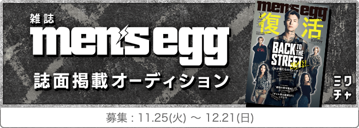平成の時代ストリート・ファッションをはじめとする、盛り髪、チャラ男、お兄系など、“ギャル男カルチャー”で一世風靡を果たした『men’s egg(メンズ・エッグ)』。