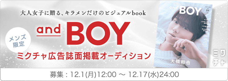 『andBOY』ミクチャ広告モデルオーディション開催決定!!
