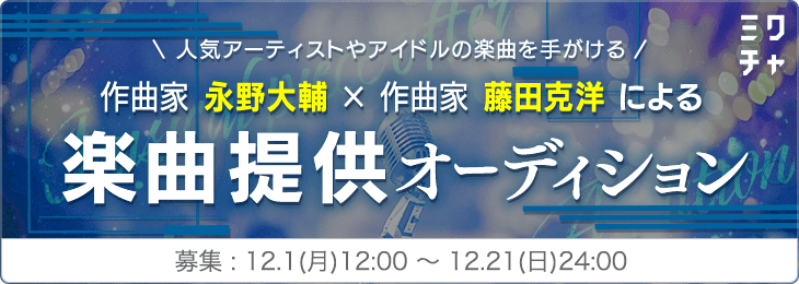 人気アーティストやアイドルの楽曲を手がける作曲家 藤田克洋 × 作曲家 永野大輔による楽曲提供オーディション