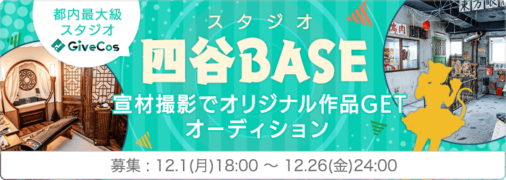 都内最大級スタジオ GiveCos スタジオ四谷BASE 宣材撮影で、オリジナル作品GETオーディション!