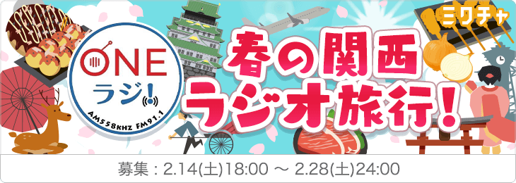 ラジオ関西「ONEラジ!」出演のチャンス!
