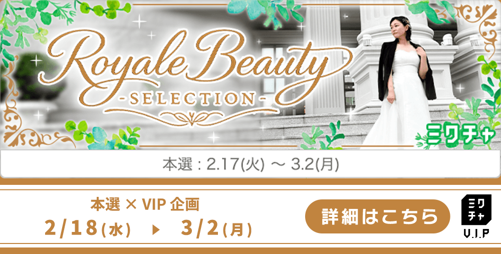 ●ライブ配信・動画投稿をする際は、必ず [ Royal Beauty Selection by Miss.Bouquet ] のイベント選択 をお願いします。正しく選択をしていない場合は獲得したミクチャポイントがランキングに反映されませんのでご注意ください。また、誤ってイベント選択した際にポイントを対象イベントに反映することはできかねますので予めご了承ください。