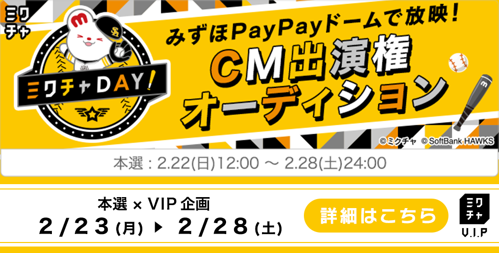 福岡ソフトバンクホークス【ミクチャDAY】みずほPayPayドームで放映!CM出演権オーディション