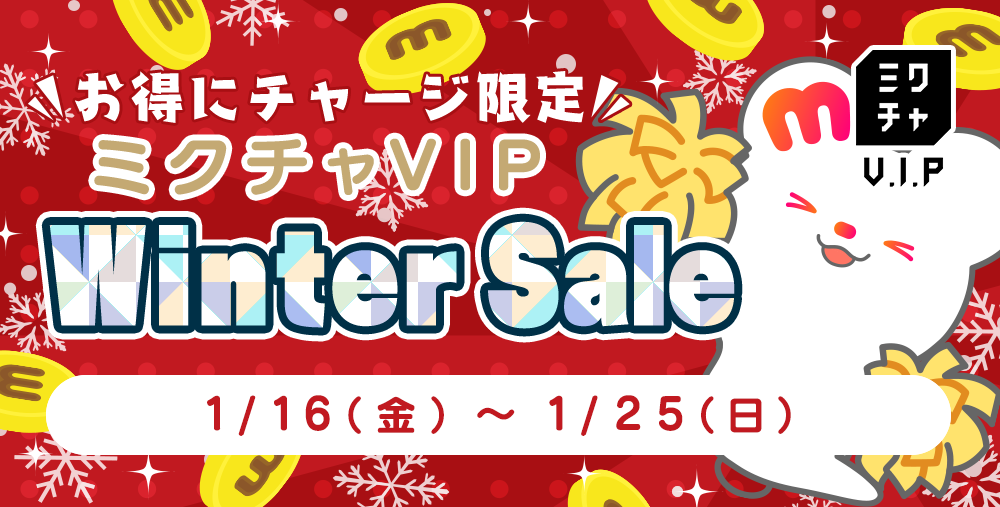 ●本キャンペーンは、VIP会員様のみ(ミクチャVIPにて登録済アカウント1つのみ)が対象となります。また、以下の場合はキャンペーンの対象外となりますのでご注意ください。