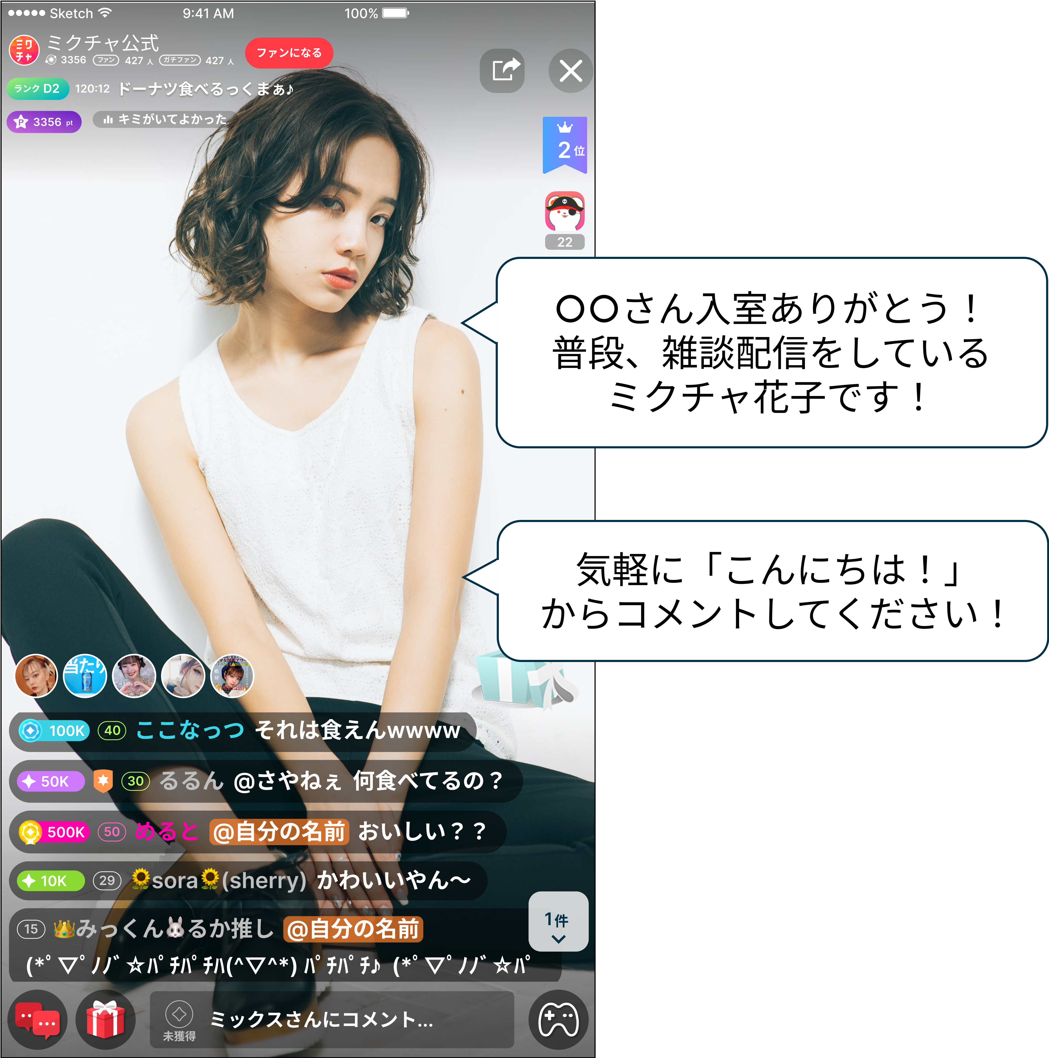 - コメントしてもらえたら、ミクチャの操作方法や配信枠の盛り上げ方を教えてあげましょう!