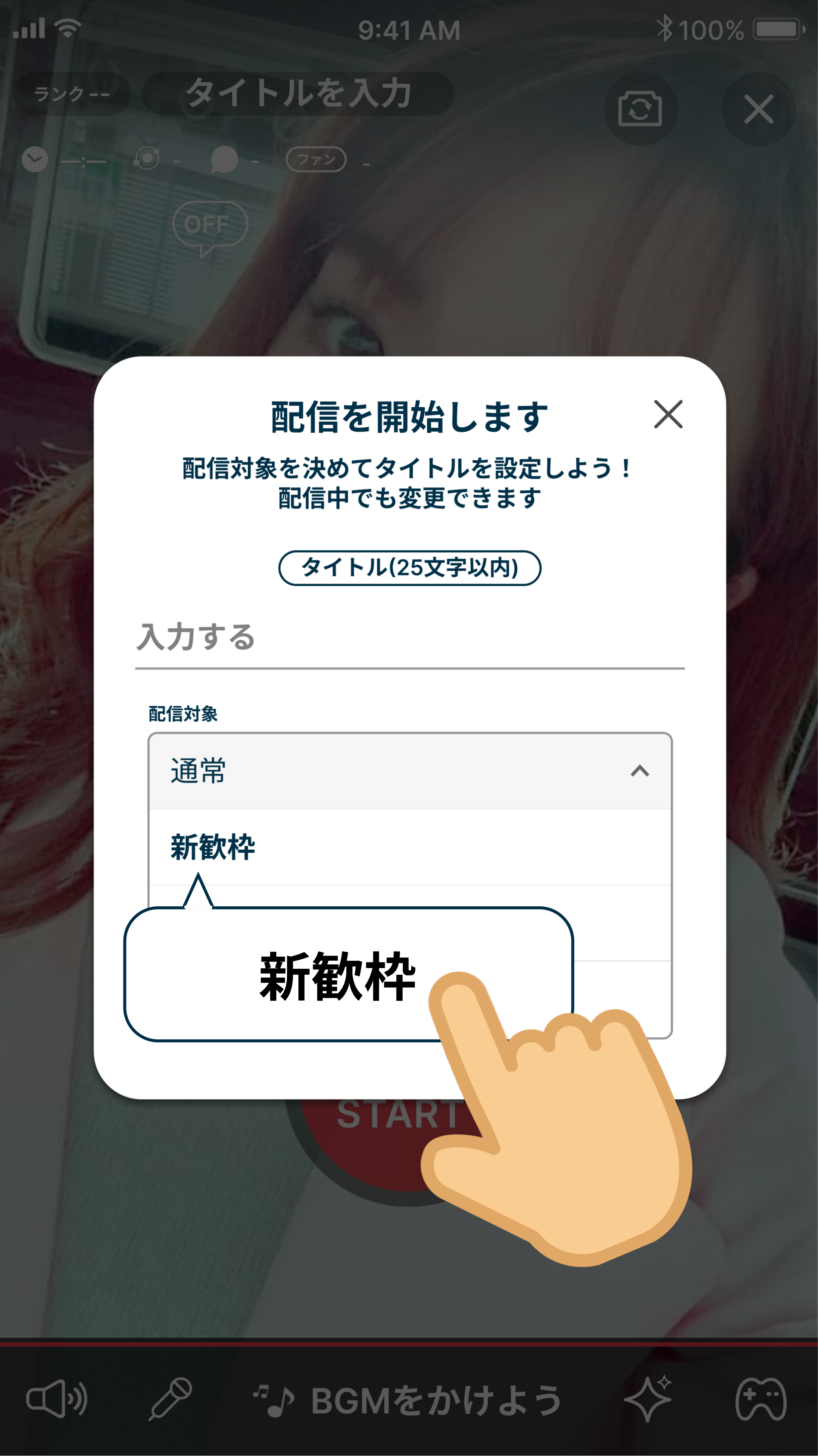 - 新歓枠は、マネージャー、アプリを初めてから3日以内のリスナーだけが参加できる配信方法です。