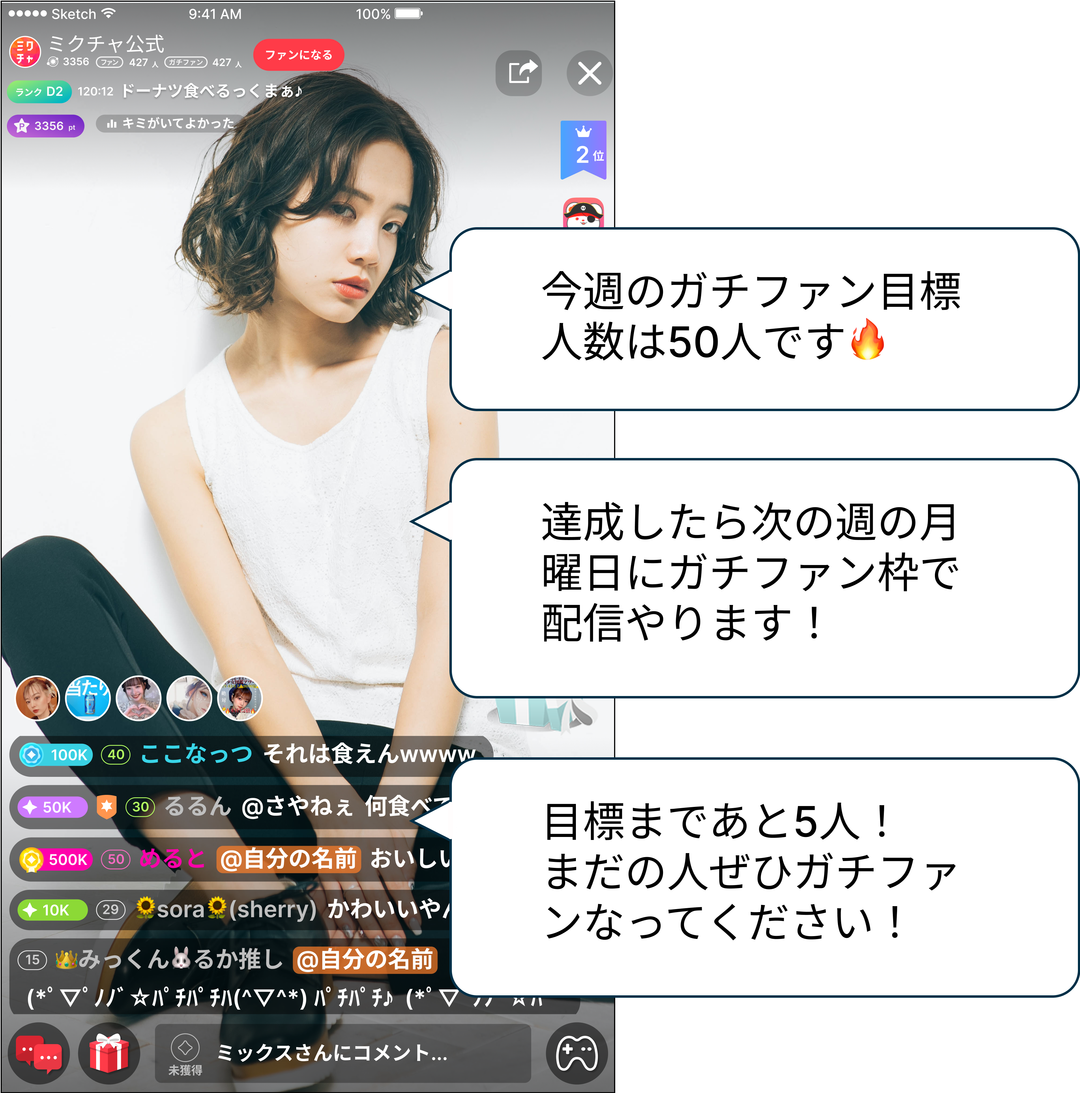 - 配信中は、ガチファン1人1人に感謝を伝えよう!