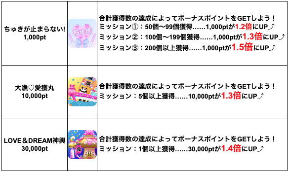 ※ボーナス獲得ポイントは最終集計時に加算されます。ランキングには即時反映はございません。