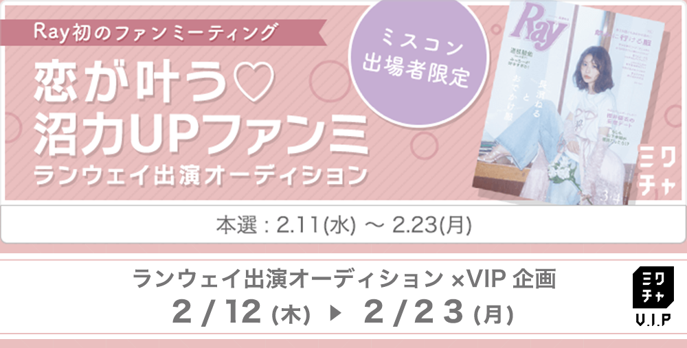 【ミスコン出場者限定】Ray初のファンミーティング『恋が叶う♡沼力UPファンミ』ランウェイ出演オーディション×VIP企画