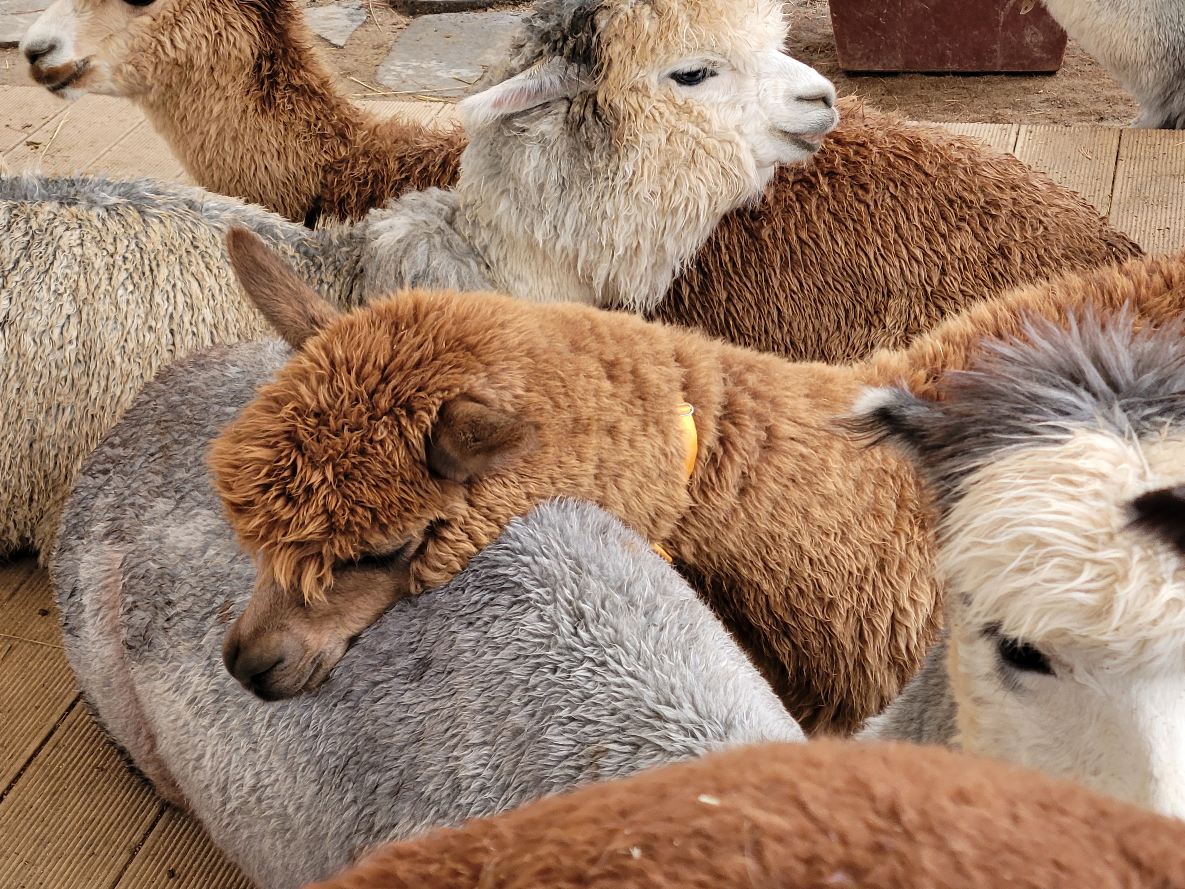 ・冷たい手を温めるあたたかい触れ合い:肌寒い冬風の中でもアルパカのぬくもりが伝わります。