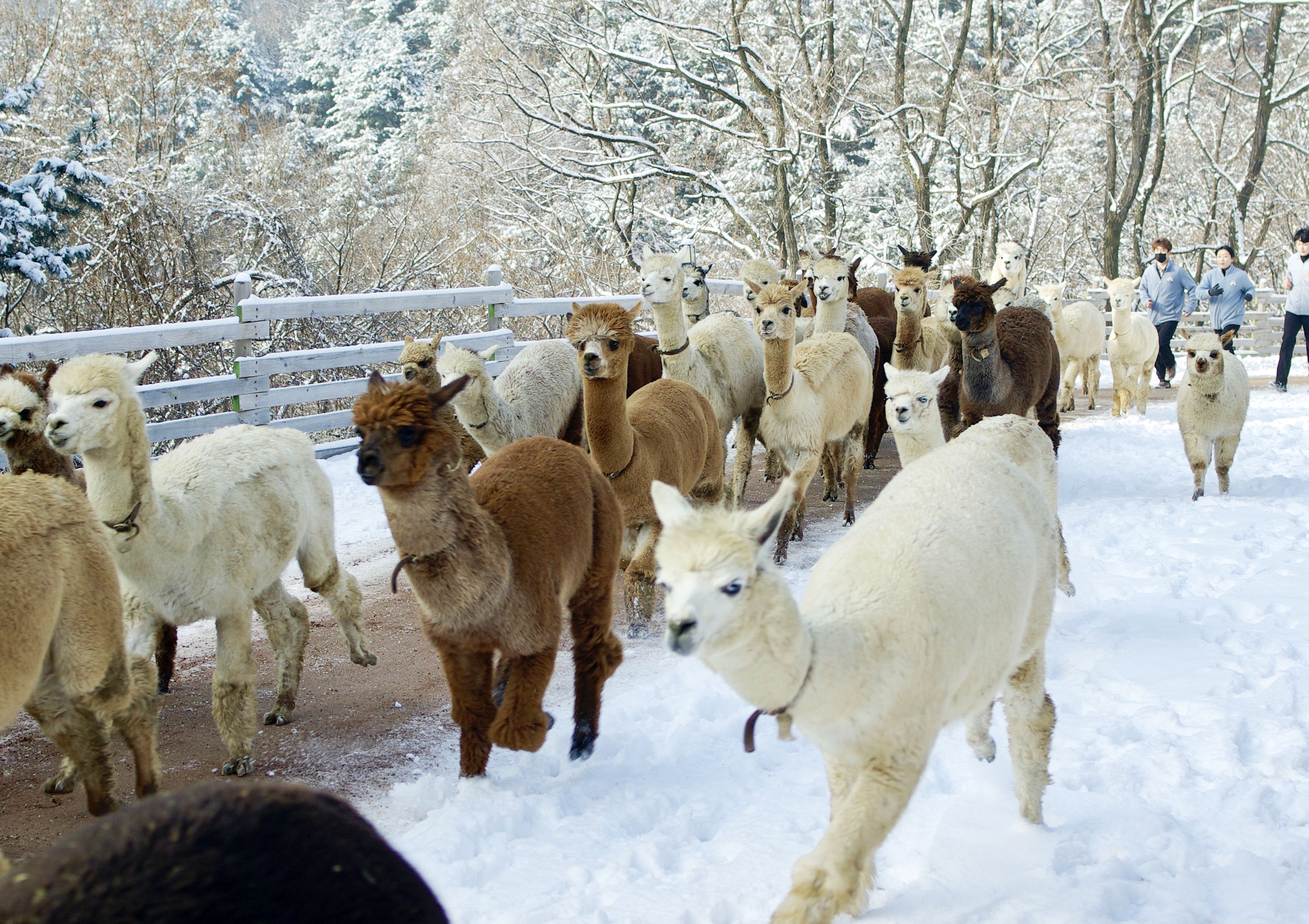 ・冬だからこそかわいい!“ふわふわ”アルパカ:寒さに耐えるため毛がふさふさのアルパカたちは、普段より丸くてかわいらしい姿を見せてくれます。最も愛らしい状態のアルパカと近くで目を合わせながら森を歩いてみてください。