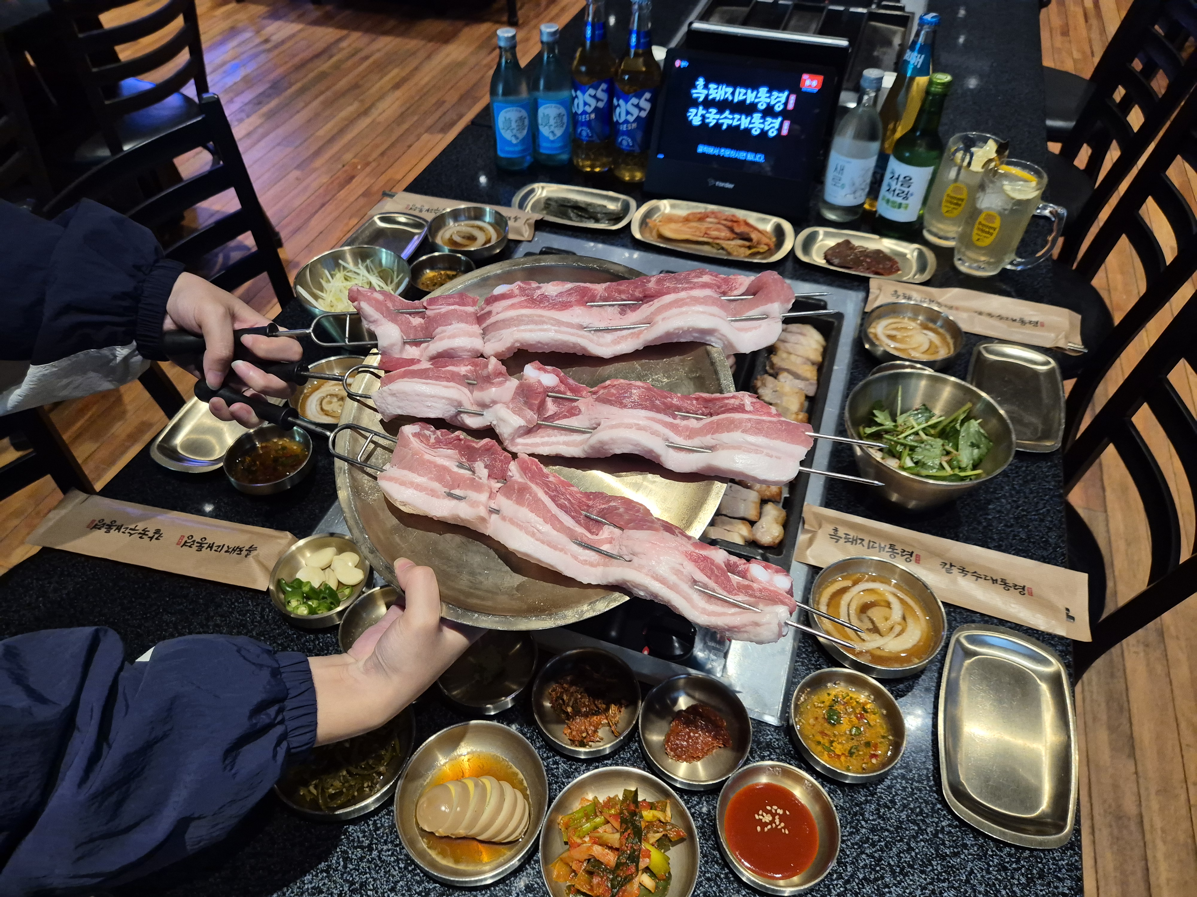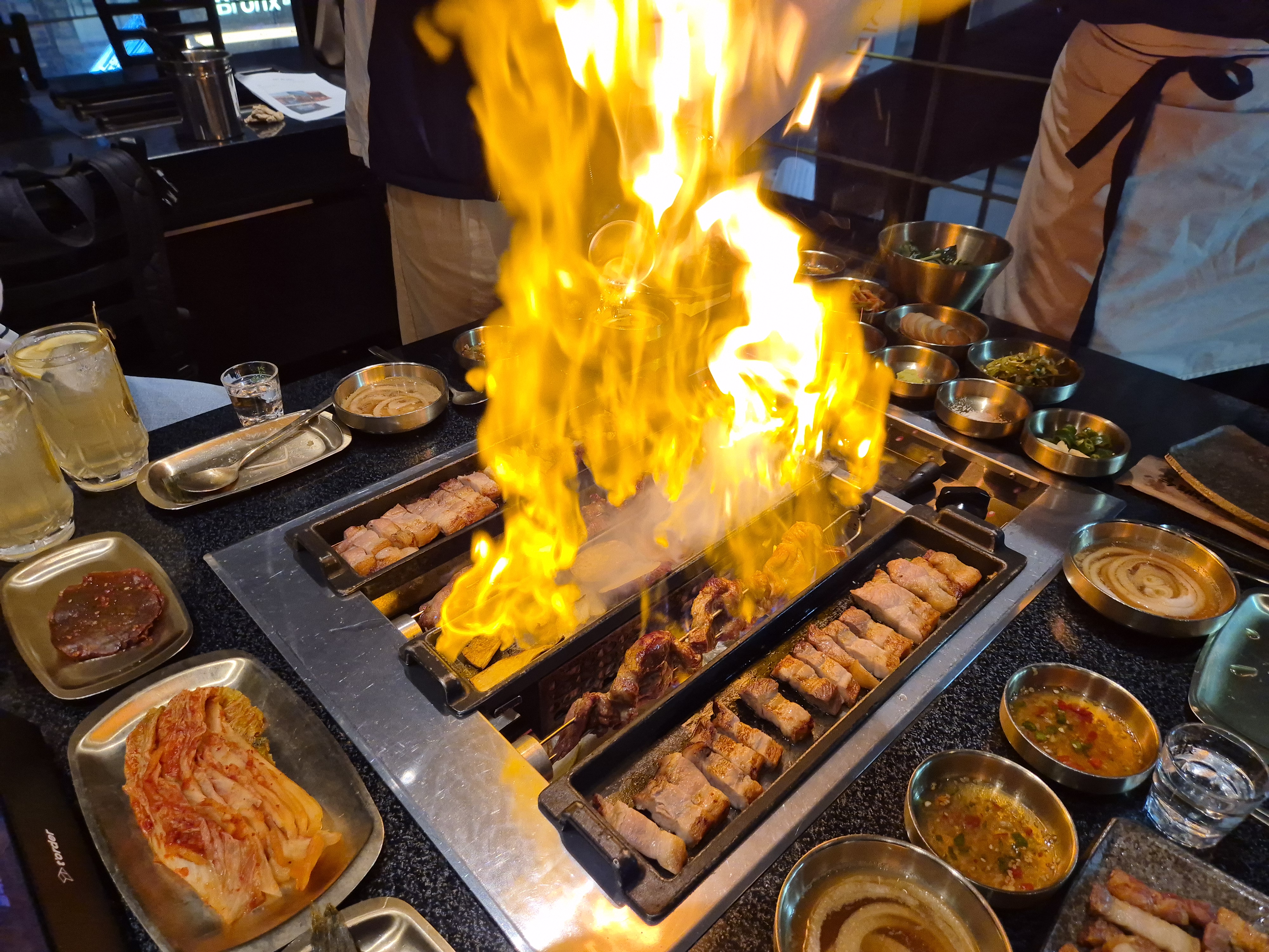 ・目の前で繰り広げられる綺麗な“ファイヤーショー(Fire Show)”:単なる食事ではなくエンターテインメント!肉の臭みを消し、風味を引き立てる華やかな炎のパフォーマンスは、韓国旅行中の最も熱く、印象的なインスタ映えの瞬間になるでしょう。