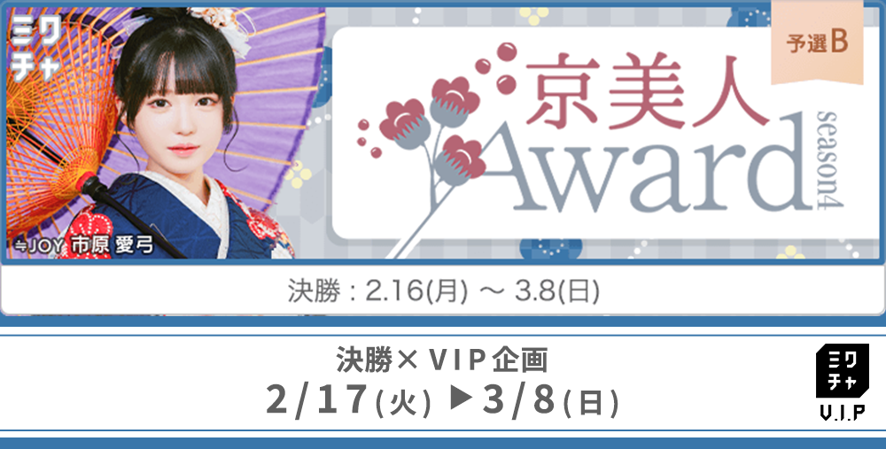 達成後、「京美人Award Season4 予選Bブロック 決勝×VIP企画×VIP企画希望」と