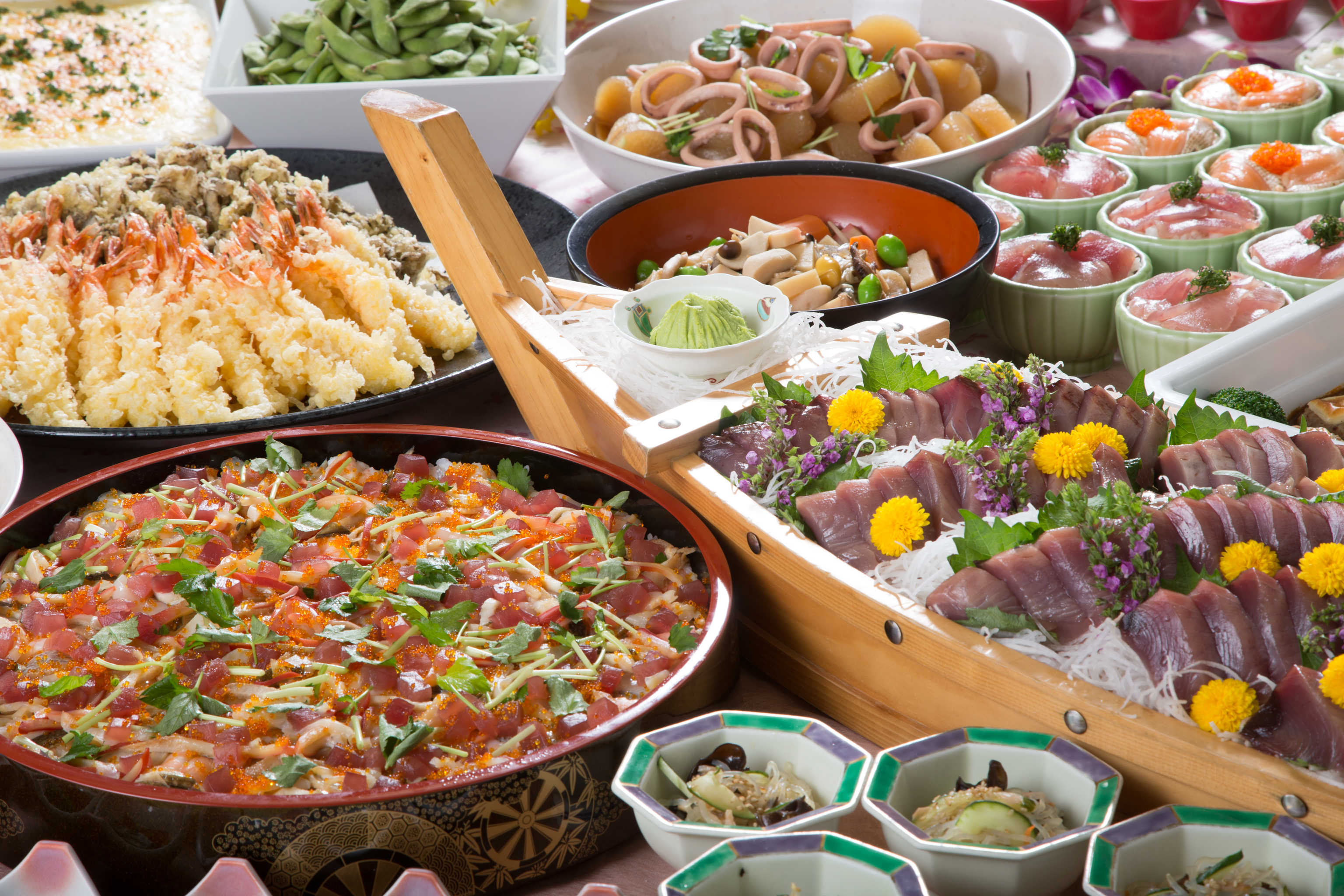 料理はバイキングスタイルで、夕食はアルコールドリンクも飲み放題!