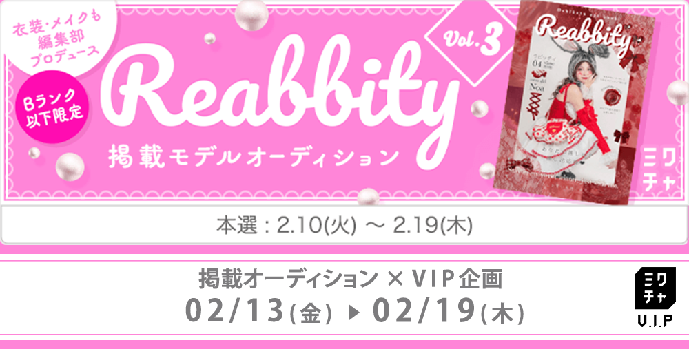 【Bランク以下限定】衣装・メイクも編集部プロデュース🎀雑誌Reabbity掲載モデルオーディション vol.3×VIP企画(アプリ用)