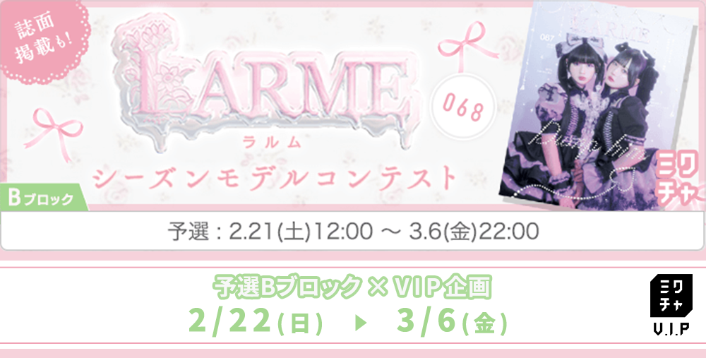 達成後、「LARMEシーズンモデル 予選B×VIP企画希望」と