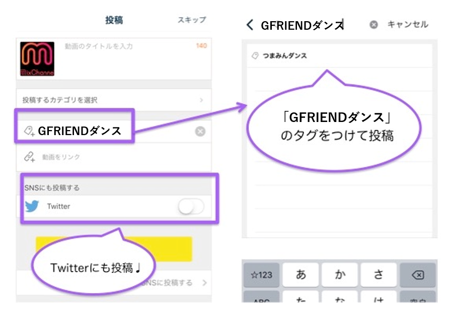 タグ「GFRIENDダンス」をつけて動画投稿完了