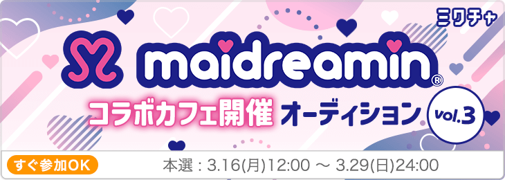 💗「めいどりーみん」💗 💗コラボカフェ開催オーディション💗 オフイベあったらいいよね☺️ 3/16(月)〜3/29(日)23:59:59 💗 平日は20:30〜24:00固定? 休日は予定次第 まずは目指せ赤文字‼️ ーーーーー以前のイベントーーーーー 💐第14回 ミスブーケ💐 (2025/1〜2025/5) グランドファイナリスト 🥇スカウトモデル賞🥇受賞 🏅アルファブランカ賞🏅受賞 📸ミクチャShowTime モデル撮影会📸 (2025/6) 🥇第1位🥇アルピー酒井さんと共演✌️ 👘京雅祭👘 (2025/4〜2025/7) 🏅第4位🏅京都コレクション出場(10/5)✨ ☕️マグカップ☕️ (2025/7) 💫2万ポイント達成💫マグカップGet‼️ 🎐京都きもの友禅PRモデルオーディション🎐 (2025/7〜2025/8) 🏅第6位🏅初の短期ガチイベ💪 👚ミックマTシャツ屋さん👚 (2025/5/9) 🎖️20位🎖️ 🎃ミクハロ👻仮装ランウェイステージ🎃 (2025/10) 🥉3位🥉ランウェイ歩いたよ🐈⬛ 🧟♀️最終決戦🧟♀️ (2025/11) 大大大感謝の🎖️5位🎖️ 🎓Phase1 終了🎓 (2025/11/5) 🌸Phase2 開始🌸 (2026/3/2) 🍕ナポリの窯 吉祥寺通り店 1日店長オーディション🍕 (2026/3/15) 感謝の🎖️4位🎖️ 20万pt達成 ーーーーーーーーーーーーーーーーー 【頑張ってること💪】筋トレ🏋️・着付け 【特技🤍】旅行計画✈️・中国語🇨🇳・手芸🧵・絵🖼️ 【好き🥰】動物🐕・着物👘・文通✉️ 【苦手🙅♂️】運転🚗・片付け🪮・水泳(超カナヅチ)🏊 【推し🤩】anoちゃん、山本舞香、土屋アンナ