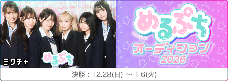 💫🩷🩵めるぷちAD2026に挑戦します🩵🩷💫 昨年は2次審査まで進ませていただきましたが いろいろな面で無力さを強く感じました。 それから1年‼️ 反省し、学び、私はパワーアップしました💪🏻❤️🔥 そんな私を見て欲しい🌟 応援よろしくお願いします🩷💫 💝現在ミクチャ審査予選期間中💝 【ご報告】 めるぷちAD2026の書類審査を通過し、2次審査へ進ませていただくことになりました✨ この先へ進むために 気を引き締め直して挑み続けます🔥 💗めるぷちAD2026ミクチャ審査💗 🌟スタートダッシュ🌟 12月3日(水)5:00〜12月11日(木)20:00 🫧予選🫧 12月12日(金)5:00〜12月25日(木)20:00 💎決勝💎 12月28日(日)5:00〜1月6日(火)20:00 【配信時間】 平日➡夕方から 土・日・祝➡午前+夕方から ※多少時間の前後はあると思います ※20時前には必ず終わります 年齢:12歳(小学6年生) 身長:162cm 好きな食べ物:蟹・じゃがりこ 夢:めるぷちメンバー KーPOPアイドル ファンマ 🐣🌸⇐みんな使ってね💓 💗Tiktok・Instagramアカウントパパ垢💗 Tiktok chio._0514 Instagram chio._0514 私の配信では、見に来てくれる方に 楽しんでもらえるよう、 私自身がいちばん楽しみながら、 配信をしています💝 リスナーさんから 「ちおちゃんの配信って、勝負って感じじゃなくて、純粋にみんなと雑談を楽しんでるところが好き」 と言ってもらえたことがあります😻🌟 その言葉を聞いて、 「たし蟹!!それが私のスタイルか!」 と気づかされました🫰🏻💗 自然とゆるい雑談になって、 みんなと笑い合える時間☺️ そんな“ちおワールド”に、ぜひ一度遊びに来てくれたら嬉しいです🐣🌸 いつも応援してくださるファンの皆様、MGの皆様‼️ いつも支えてくれてありがとうございます👊🏻💖 まだまだ未熟な私だけども これからも仲良くしてね🐣🌸