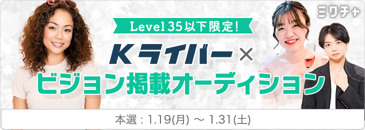 Kライバー×ビジョン掲載オーディション 1/19〜1/31 ※仕事が多忙なため、配信時間あまりとれません 応援 ひろき⚾️❄️ あいり❤️🪽 神崎りく🫅🐱