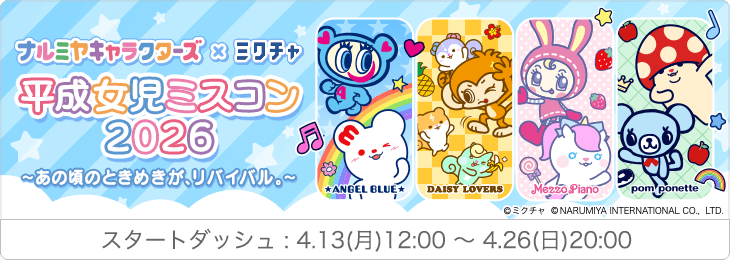ナルミヤキャラクターズ×ミクチャ ● 募集 3月13日(金)12時00分~4月12日(日)24時00分 ● プロローグ 3月27日(金)18時00分~4月6日(月)24時00分 ● スタートダッシュ 4月13日(月)12時00分~4月26日(日)24時00分 ● 本選 4月28日(火)18時00分~5月24日(日)24時00分 ● 撮影 2026年7月3日(金)@都内 ● 掲載 2026年夏予定